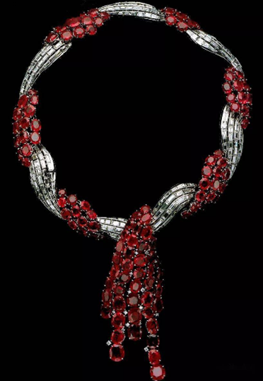 在與辛普森夫人共度的日子中,溫莎公爵定制了以卡地亞和梵克雅寶為主的大量珠寶,這些首飾上多刻有紀念銘文。 在妻子40歲生日時,溫莎公爵為她定制了一條由梵克雅寶的設計師瑞尼森·拉卡茲設計的項鍊,項鍊的中間部分由紅寶石製成,可以自由拆卸,放置在項鍊的中央 或一側。 項鍊的鉤扣上銘刻著他的心意:「My Wallis from her David,19.VI.1936.」(我的沃利斯,她的戴維贈,1936年6月19日)。 可以說,梵克雅寶見證了溫莎公爵伉儷各階段的愛戀,在他們相伴的35年中,溫莎公爵向梵克雅寶定制過很多特殊樣式的珠寶,也催生了梵克雅寶的兩件 經典設計:「Zip」拉鍊項鍊和「Cadenass」腕錶。