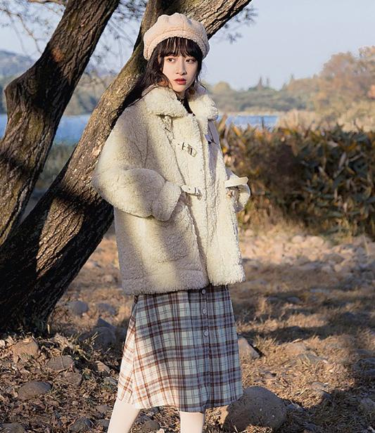 穿搭指南4:日係可愛貝雷帽+羊羔毛+半身裙