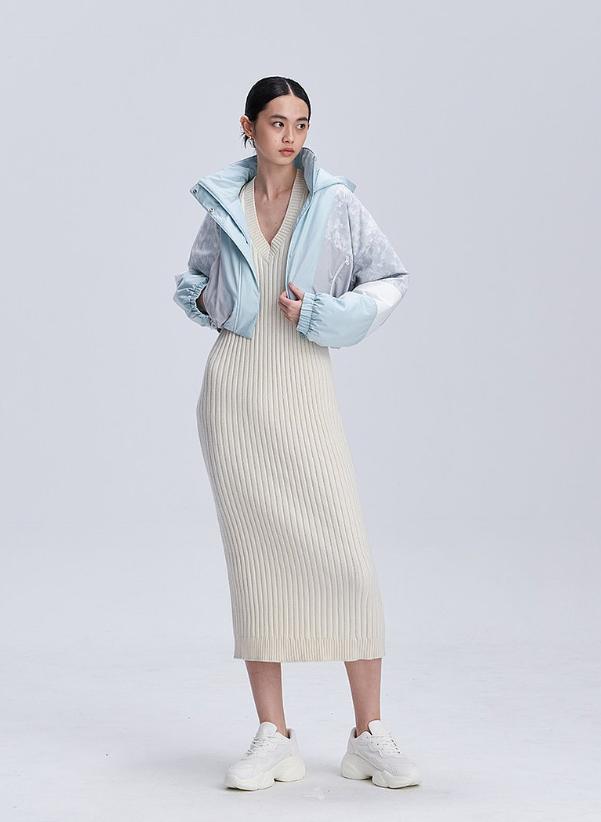穿搭示範6:歐美風短版棉外套+緊身針織洋裝